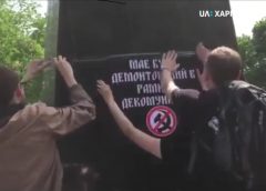 Активісти наклеїли на пам’ятник Жукову плакат із написом «Має бути демонтований в рамках декомунізації».