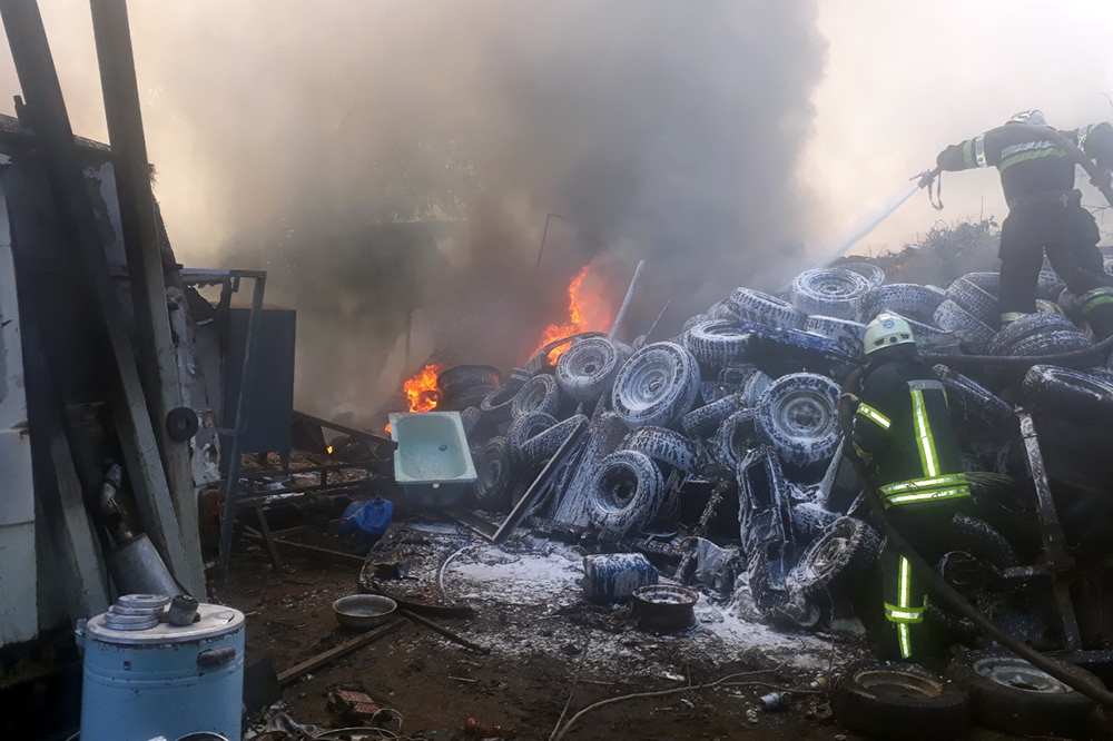 Вранці 5 серпня по вул. Беркоса, 7 (в районі станції “Харків-Сортувальний”) сталася масштабна пожежа старих автомобільних покришок.