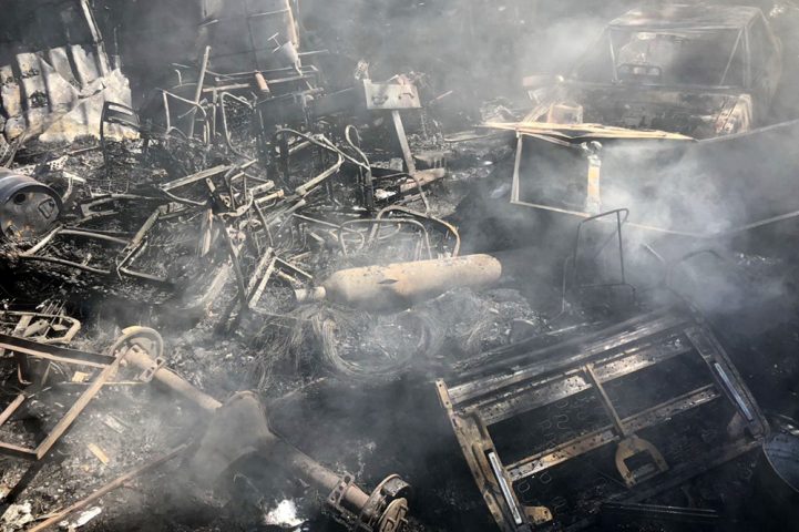 В результаті дії вогню та високої температури знищено чотири та пошкоджено п’ять автомобілів. Наразі вживаються заходи щодо остаточної ліквідації горіння.