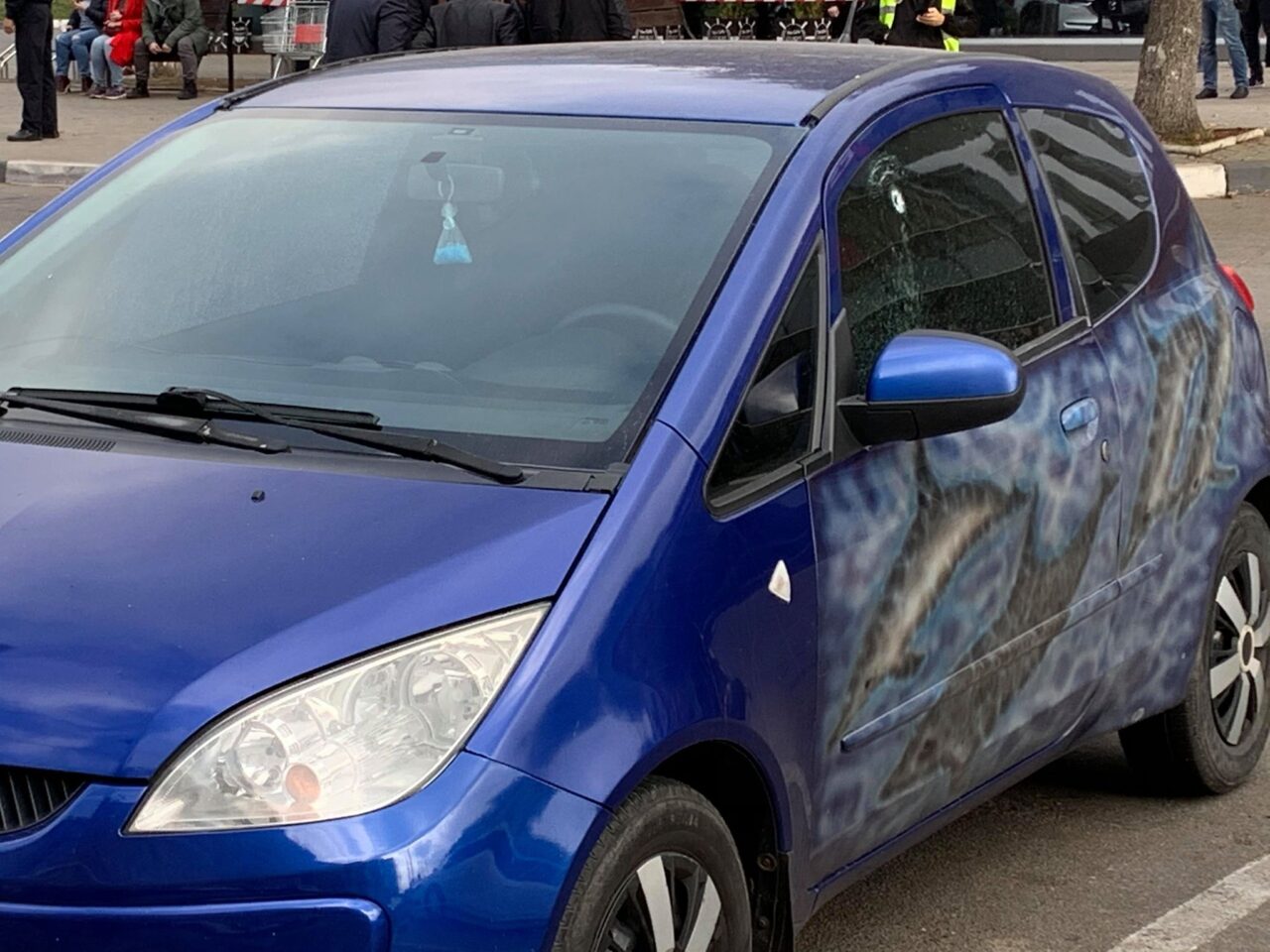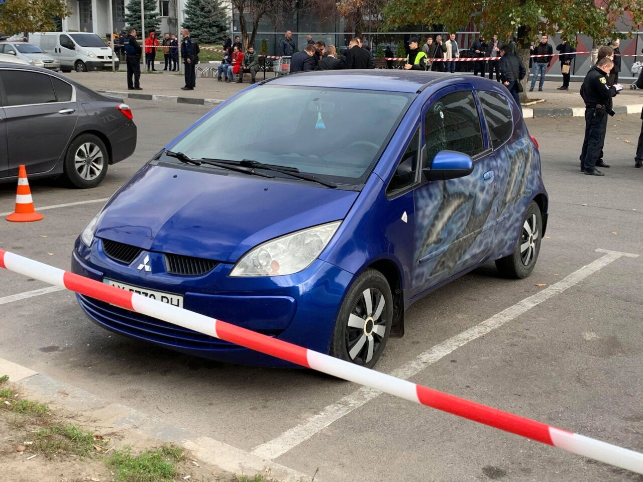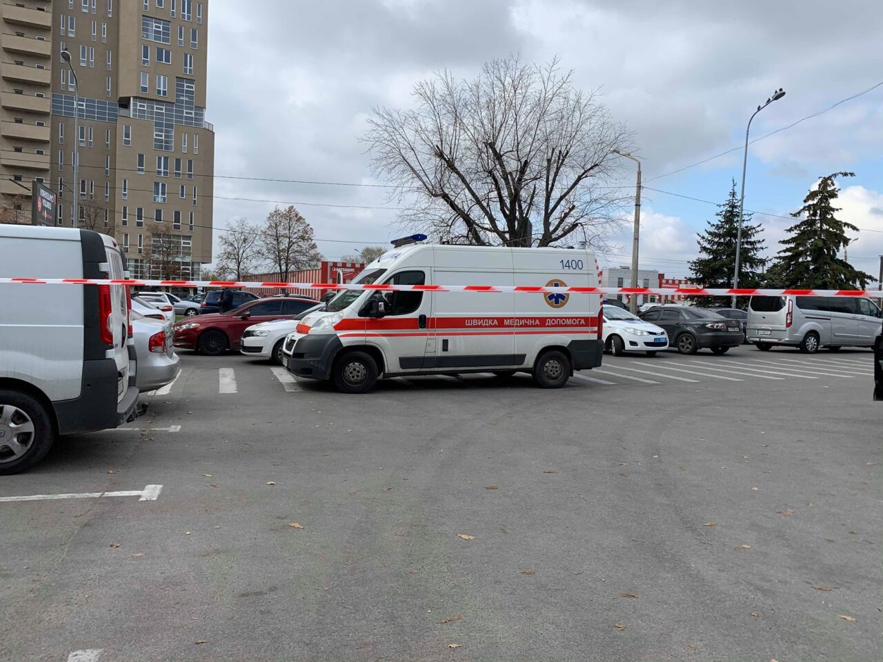 Пораненого відвезла “швидка допомога”. Парковку перед супермаркетом оточили поліцейські. Зброя, з якої стріляли, лежить на землі.