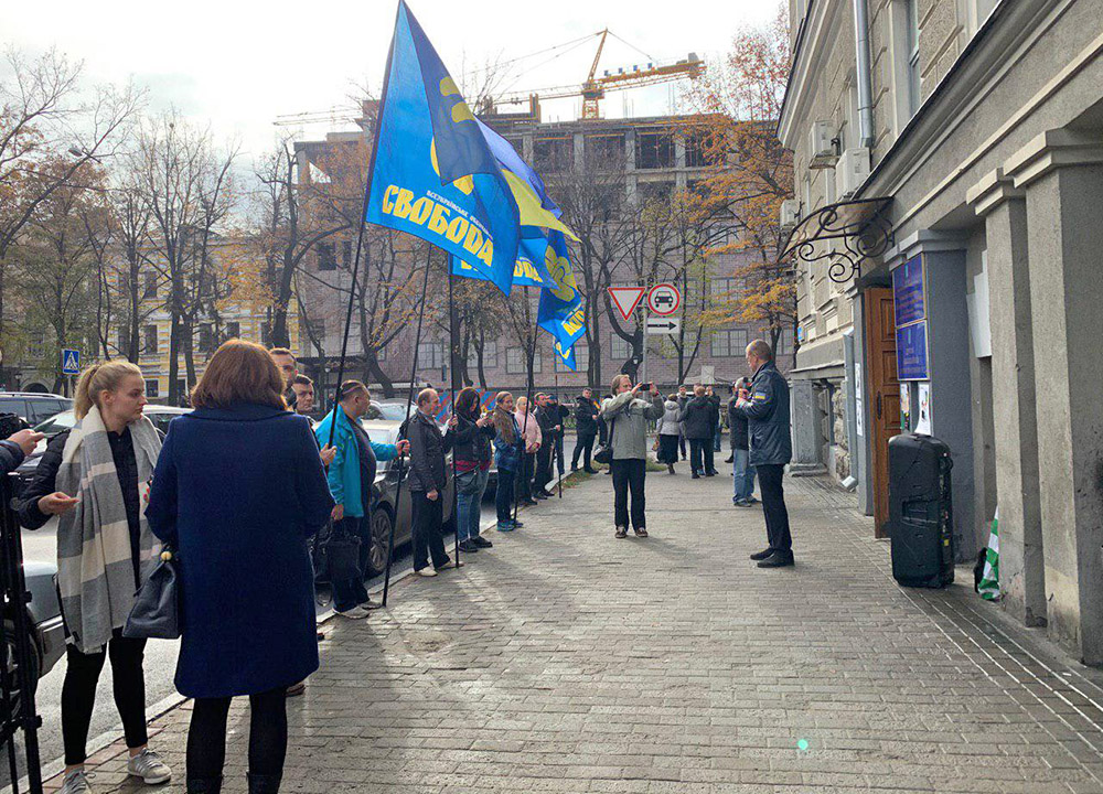 Під час засідання біля входу до будівлі суду близько 20 активістів провели акцію проти перейменування проспекту на ім’я Жукова. ” Це суто негативний персонаж, який під час другої світової війни посилав на смерть українців. Він не жалів українців. Це м‘ясник”, – сказав учасник акції Вадим Поздняков.
