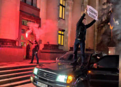 Активісти заїхали на позашляховику до входу у будівлю та запалили файєри, вимагаючи безпеки та дотримання правил дорожнього руху.