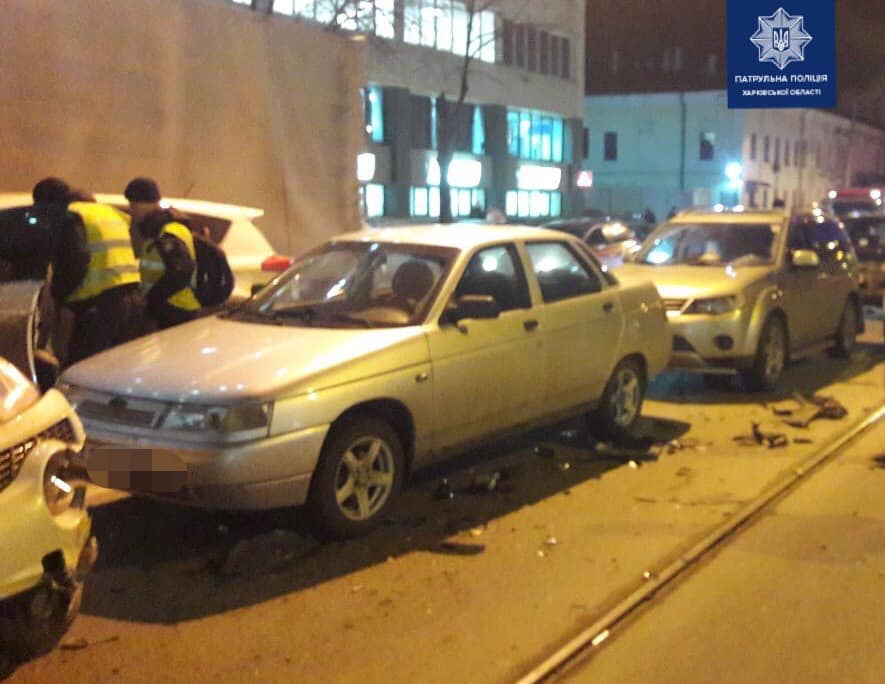 Як повідомили у прес-службі Управління патрульної поліції Харкова, учасниками ДТП на на вулиці Полтавський Шлях стали автомобілі: Volkswagen Golf, BMW 535, Nissan, Mitsubishi, Hyundai, Toyota, BMW та Bogdan.