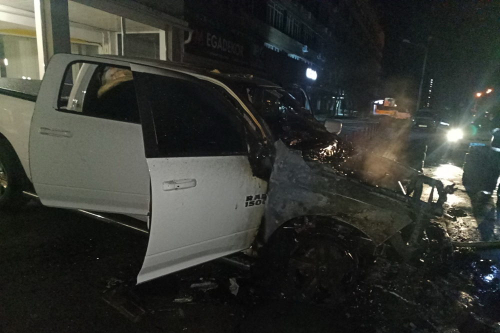 Вночі 16 березня біля будівлі на проспекті Науки, 40 у Харкові спалахнули відразу два позашляховика Dodge RAM 1500.