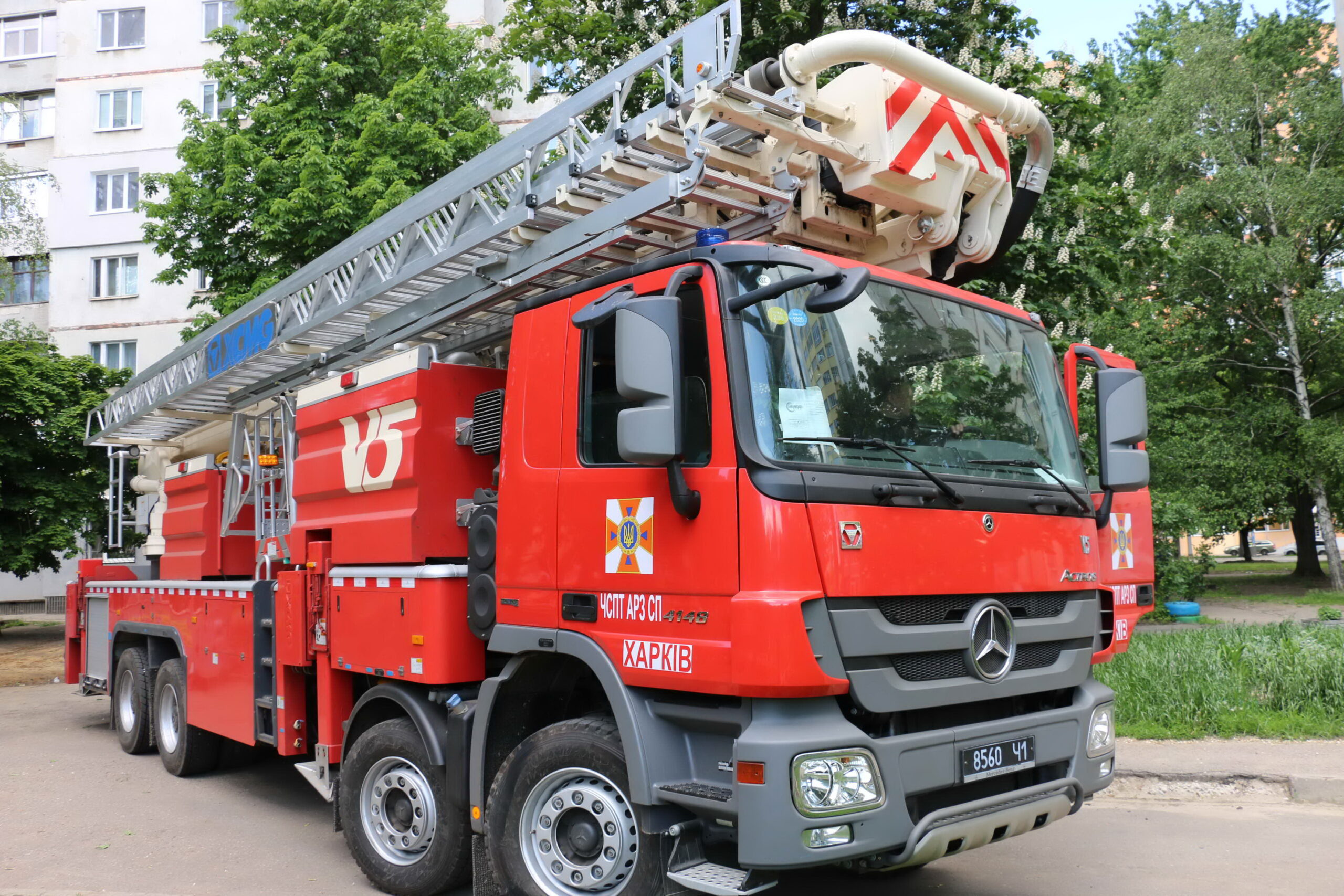 Бійці Харківського гарнізону Державної служби з надзвичайних ситуацій вивчають можливості нової пожежно-рятувальної техніки – автопідіймача на базі вантажного автомобіля «Mercedes-Benz». Він може використовуватись для проведення аварійно-рятувальних робіт на висоті до 50 м.