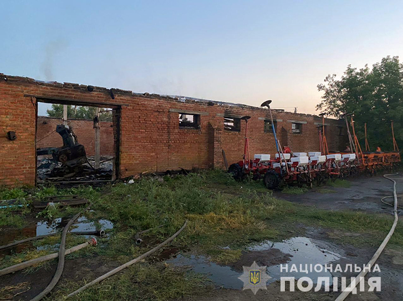 Следователи Волчанского отдела Нацполиции области расследуют возгорание помещения склада с сельскохозяйственной техникой в селе Землянки как поджог.