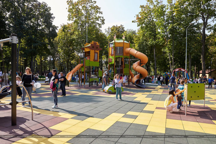 Першиий у Харкові та один із небагатьох в Україні інклюзивний дитячий майданчик відкрився у Центральному парку культури і відпочинку ім. Горького, біля канатної дороги.