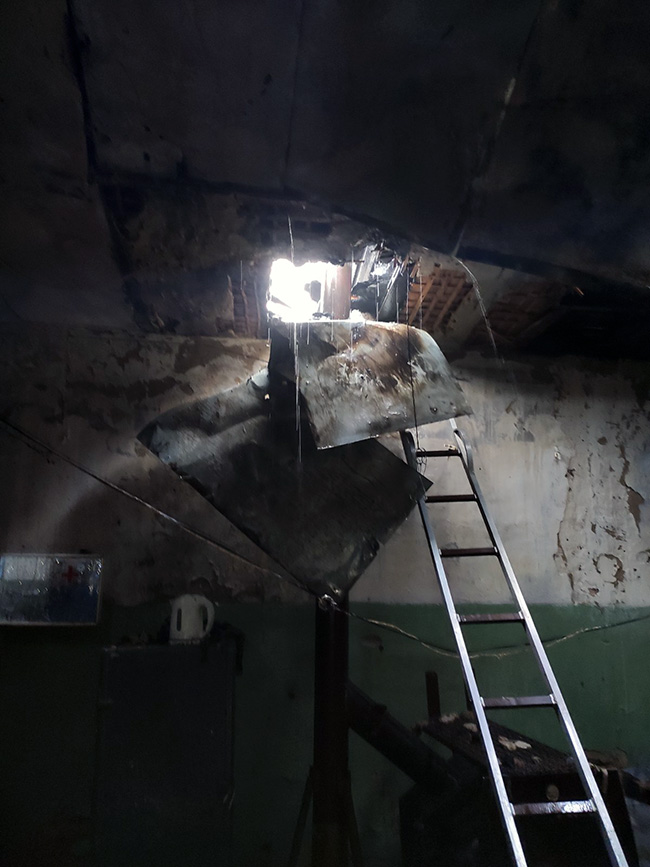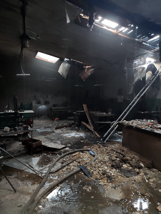 Сигнал про пожежу у виробничому приміщенні надійшов до служби “101” близько 15:00. На місце події виїхали чотири пожежно-рятувальні підрозділи. На момент їх прибуття горіло перекриття виробничої будівлі на площі близько 10 кв. метрів.