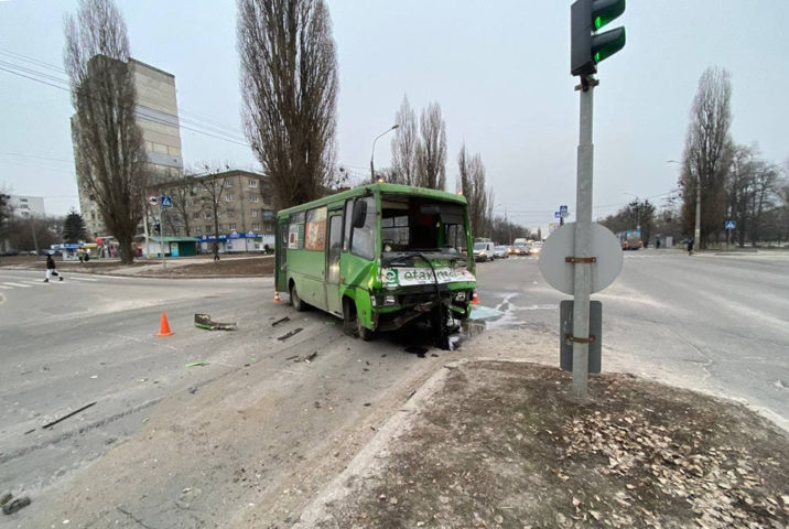 Як повідомив заступник директора Департаменту інфраструктури міської ради Олександр Кукіль, у маршрутний автобус, який виїжджав з вулиці Олімпійської на пр. Льва Ландау, врізався КамАЗ. За попередньою інформацією, вантажівка їхала на червоне світло та не пропустила автобус.