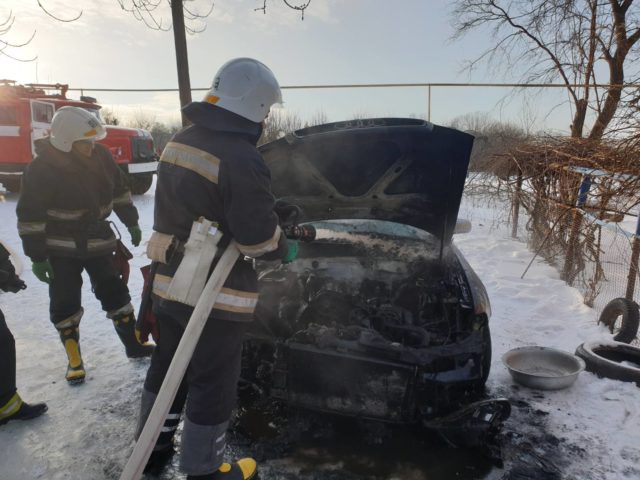 В автомобілі горів моторний відсік і частина салону. Протягом години цю пожежу було погашено, вогонь пошкодив авто на площі 3 кв.м.