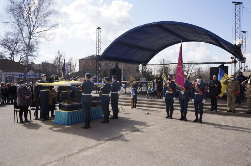 В кінці церемонії прощання рідним загиблого зі словами щирого співчуття передали Державний прапор України.