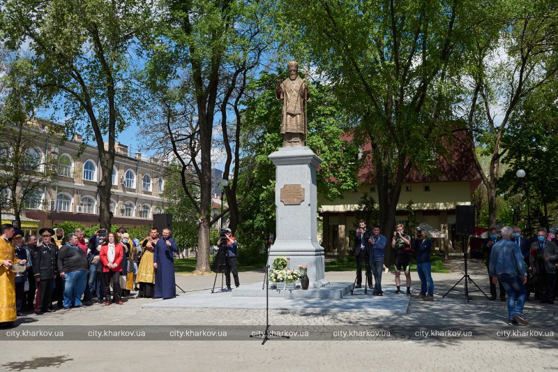 Новий пам’ятник освятив Митрополит Київський і Всієї України Онуфрій, який сьогодні вранці прилетів зі столиці. У церемонії взяли участь секретар Харківської міської ради Ігор Терехов, представники культурної, наукової громадськості, парафіяни. За порядком під час відкриття пам’ятника, за інформацією прес-служби Нацполіціі, стежили 150 правоохоронців.