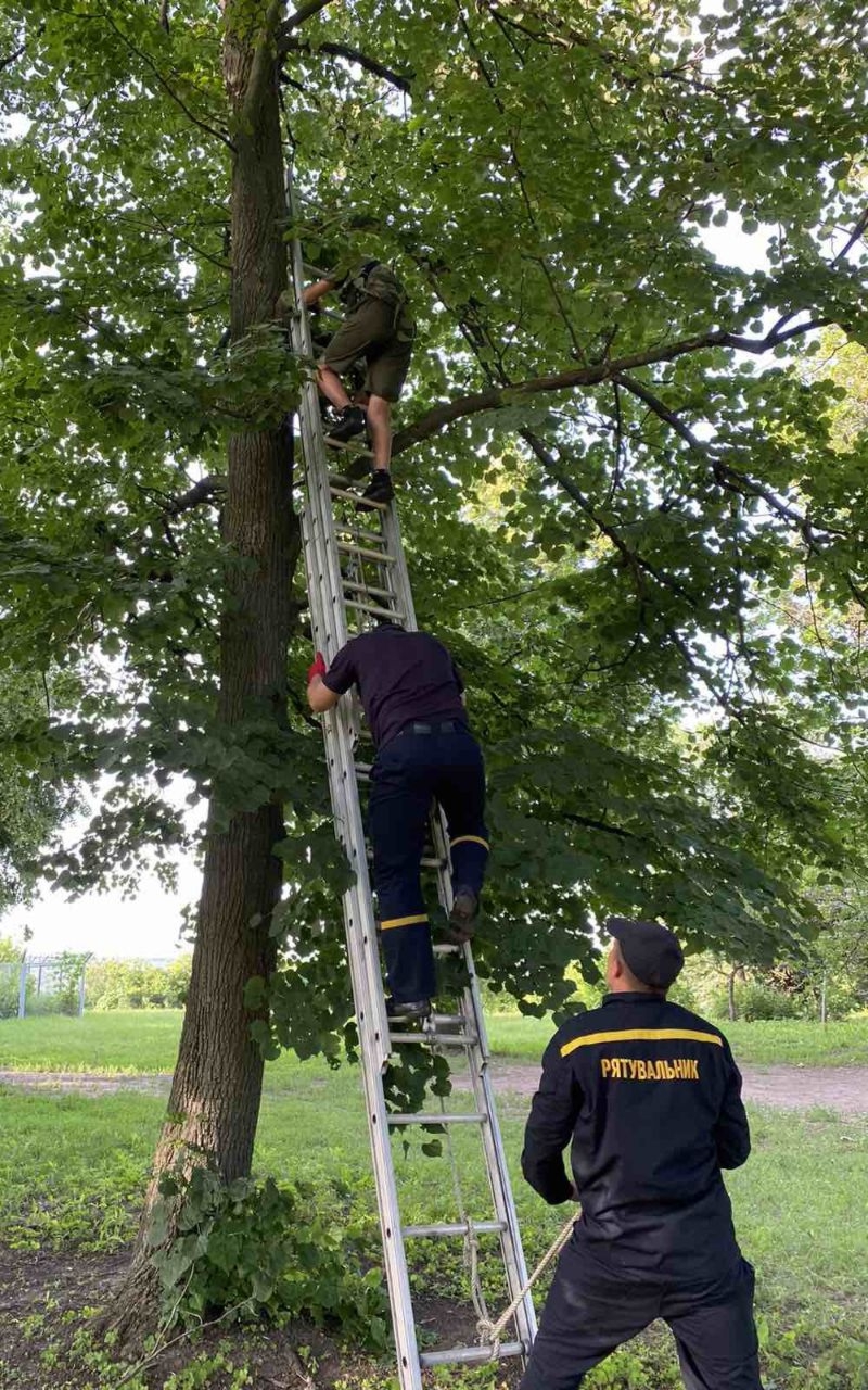 В м. Чугуєві 13-річному хлопчику знадобилася допомога рятувальників. Підліток забрався на високу липу за м’ячем і не зміг спуститися, бо було страшно.