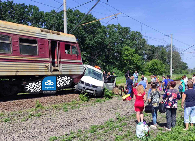 Вранці сьогодні, 25 червня, близько 10:30 на залізничному переїзді в селищі Кегичівка Харківської області зіткнулися пасажирський електропоїзд сполученням Лозова – Полтава і мікроавтобус Volkswagen.