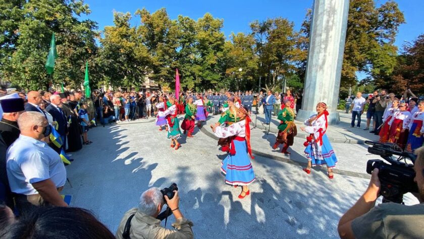 В церемонии, которая началась в 9:00, участвовали руководители города и области, представители церкви, курсанты, жители Харькова.