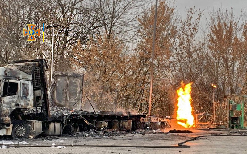 Пожежа на заправці біля Рай-Оленівки, яку рятувальники локалізували три дні тому, триває. Ситуацію контролюють співробітники ДСНС.