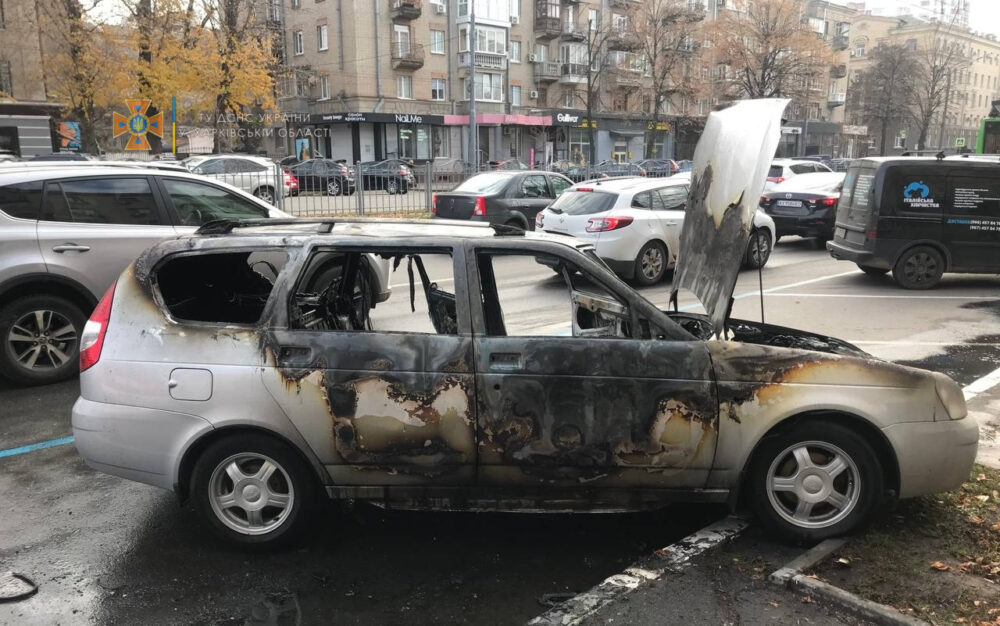 Вранці 11 листопада спалахнув ВАЗ «Пріора», припаркований на зупинці біля проїжджої частини проспекту Науки, 13 у Шевченківському районі Харкова.