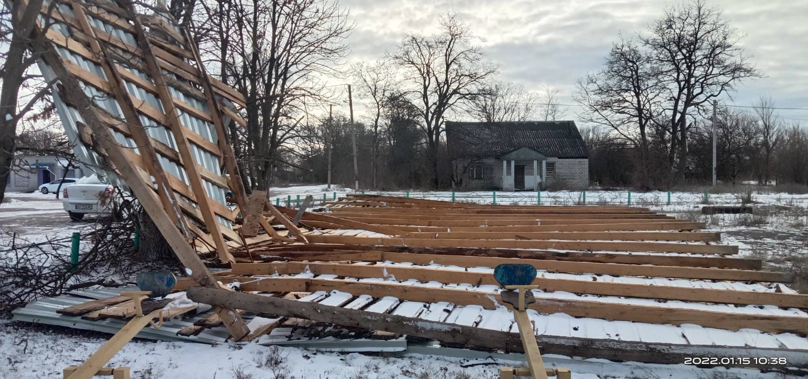 Вночі 15 січня, коли на у Харківській області значно погіршилася погода, сильний вітер зірвав дах із будівлі клубу у Лозівській громаді.