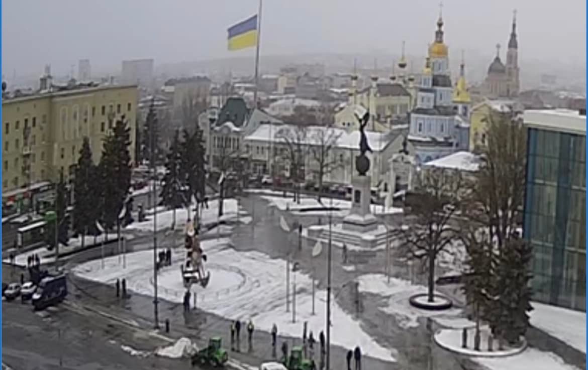 У Харкові, сильний вітер, що піднявся ввечері 14 січня, порвав прапор на найвищому флагштоку України і повалив десятки дерев і великих гілок.