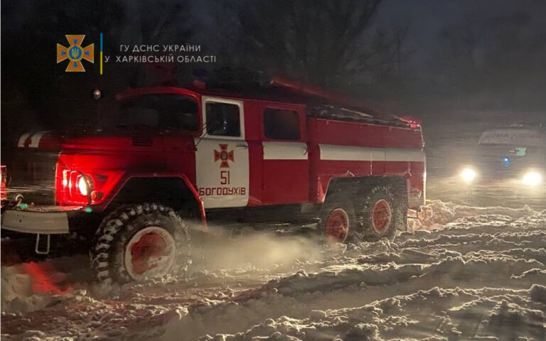 О 23:30 18 січня допомога знадобилася медикам швидкої допомоги, які везли травмованого пацієнта до лікарні. Карета швидкої застрягла на виїзді із села Полкова Микитівка Богодухівського району. Рятувальники 51 частини ДСНС своїм автомобілем підвищеної прохідності витягли швидку на розчищену дорогу.