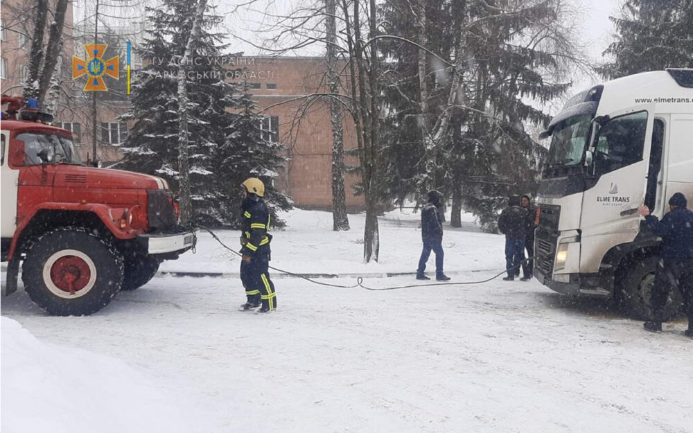 18 січня о 13:59 до рятувальників звернувся по допомогу водій вантажівки Volvo із медичним киснем. Фура застрягла на слизькій ділянці дороги на території “Обласного клінічного спецдиспансеру радіаційного захисту населення” на вул. Новгородській, 85 у Харкові. Бійці 1-ї Державної пожежно-рятувальної частини ДСНС відбуксирували вантажівку на безпечну ділянку дороги.