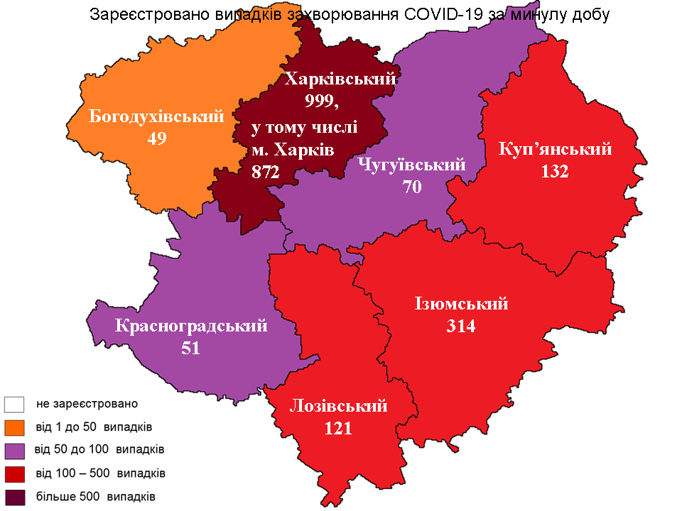 У Чугуївському районі 70 хворих, у Красноградському – 51.