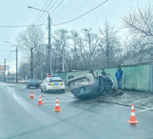 Вранці 19 лютого в Харкові на Олександрівському проспекті, 68 перекинувся автомобіль Renault.