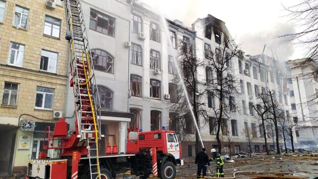 У Харкові продовжують обстрілювати житлові квартали, постраждали корпус соціологічного факультетиу Харківського національного університету імені В. Н. Каразіна та будівля Головного управління Національної поліції у Харківській області на вул. Мироносицькій.