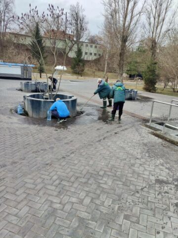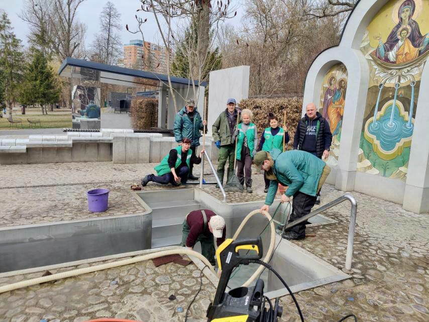 Працівники СКП «Харківзеленбуд», як і в мирний час, двічі на тиждень вимивають купальню у Саржиному Яру.