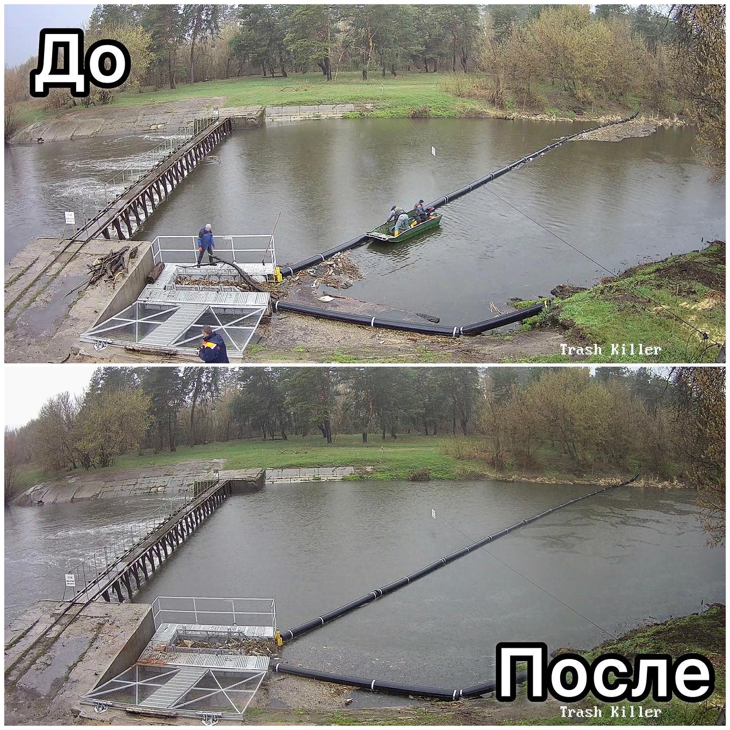 “За період весняного паводку багато сміття принесло з Харкова в сміттєвий уловлювач, героїчно бригада КП КВЛК сьогодні очистили понтонну спрямовуючу від великої кількості сміття. Все сміття переміщене в кошик уловлювача, в процесі, ми його відсортуємо і вивеземо на полігон.”, – розповів Артем Приходько.
