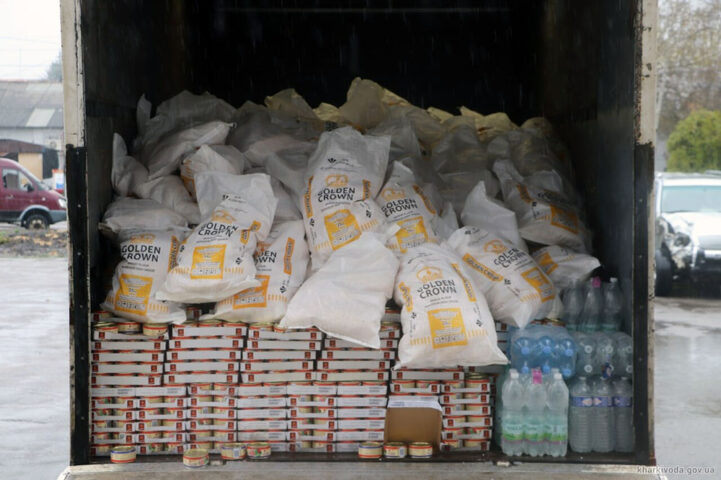 З логістичного центру у Харкові до Дергачівської територіальної громади направили продукти харчування, воду та засоби гігієни.