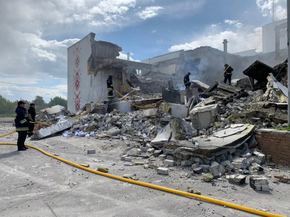 Черговий російський снаряд прилетів у Дергачівський будинок культури 16 травня о 06:04. Внаслідок попадання боєприпасу розпочалася пожежа на площі 300 кв.м. 12 рятувальників майже три години гасили це загоряння.