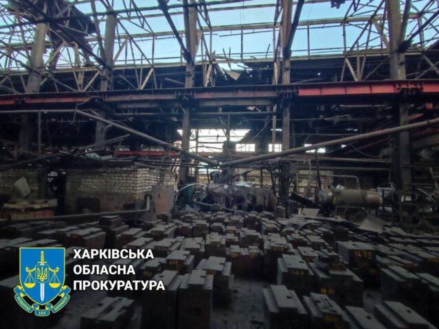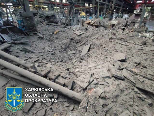 “Ракета влучила в один із цехів, площа якого складає 6000 кв.м. Крім того, ще одна ворожа ракета влучила у відкриту місцевість біля житлового масиву в Холодногірському районі м. Харкова. Утворилась воронка діаметром 8 метрів.”, – розповіли у прокуратурі.