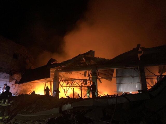 Друга ракета влучила у промисловий об’єкт у Холодногірському районі. Вибухом зруйнована виробничо-складська будівля, у якій ще й виникла пожежа на площі 600 кв.м. У її гасінні приймали участь 3 пожежно-рятувальні підрозділи.