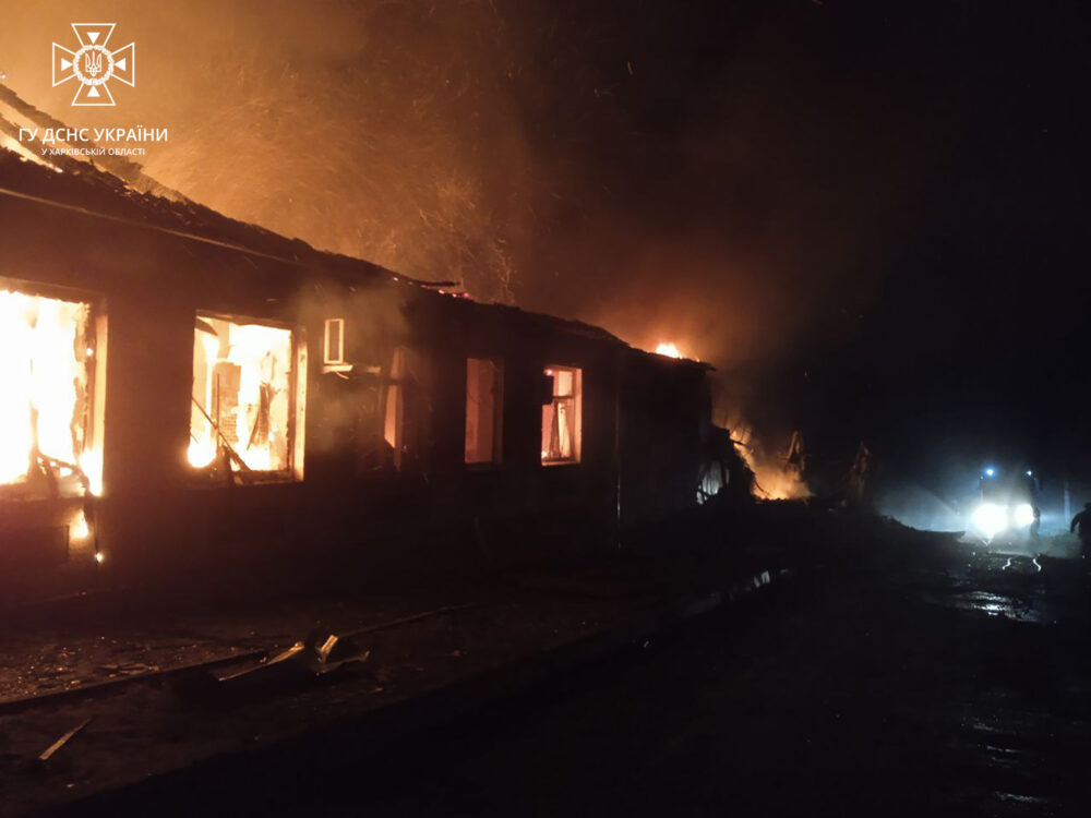 “О 23:22 внаслідок ракетного обстрілу, в Куп’янському районі сталася пожежа в магазині. Горів дах на площі 500 кв.м.”, – розповіли рятувальники.