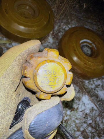 В Ізюмському районі Харківської області на узбіччі траси регіонального значення М-03 «Київ – Харків – Довжанський» поліцейські знайшли три протитанкові міни ТМ-62М та чотири ручні гранати Ф-1.