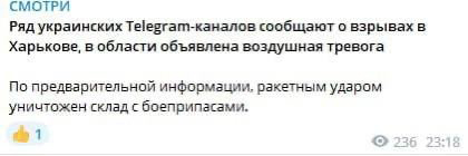 У той же час російські соцмережі пишуть, ніби влучили у «склад боєприпасів».