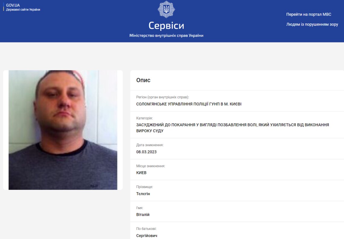 Датою зникнення Тєлєгіна вказано 8 березня 2023 року.