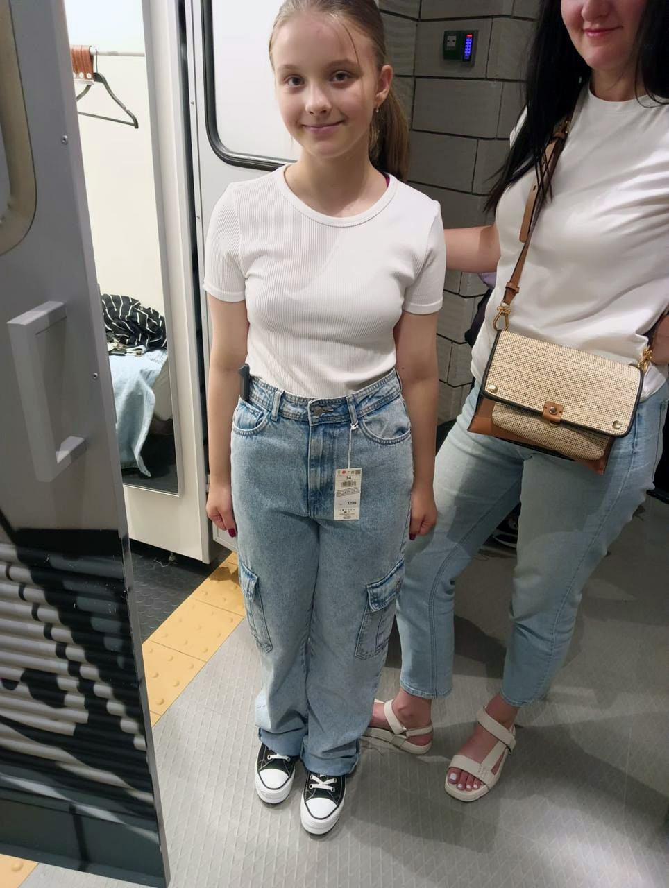 Була одягнена у сині джинси, чорні кеди, білу футболку з надписом «Долчленд», має яскраво-синій манікюр, срібні сережки у вигляді хрестика.