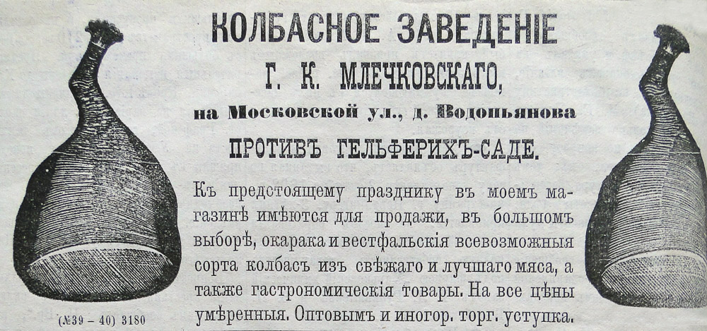 Тема виробництва ковбас у старому Харкові нескінченна: тут і безліч судових справ та скандалів через неякісний товар. Неякісні продукти, кепські умови виробництва. Отруєння ковбасою і необхідність випуску дешевих сортів для бідного люду. Боротьба міської влади зі старими виробниками, чиї майстерні і коптильні знаходились у центрі міста. Це, звісно, цікаво і дає поживу для майбутніх публікацій.