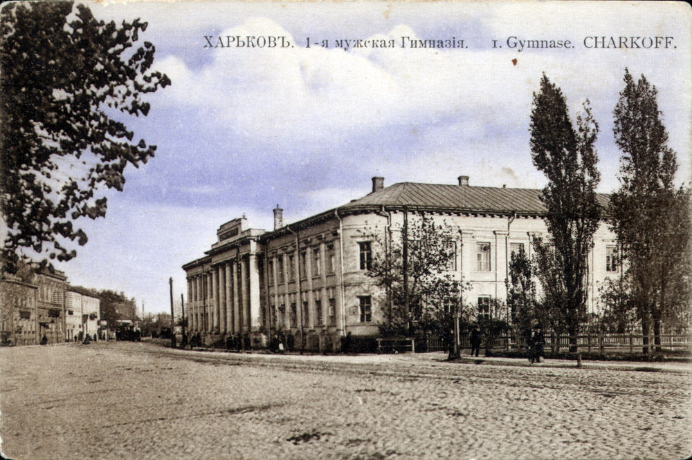 Вулиця Московська. Зліва будинок Слобідсько-Української гімназії, де вчителював Федір Ольденборгер, листівка з зібрання В. Завершинського