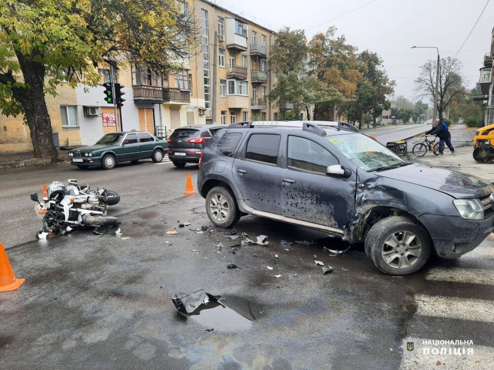 “Попередньо встановлено, що водій Renault Duster при повороті ліворуч не надав перевагу мотоциклу Suzuki, який рухався у зустрічному напрямку.”, – розповіли у поліції.