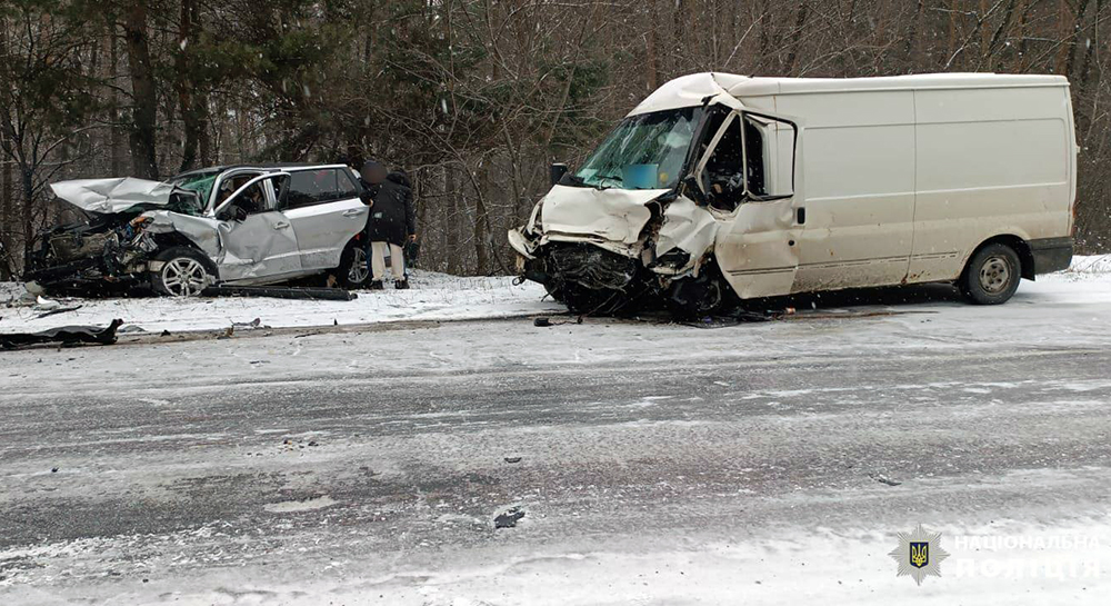 «40-річний водій мікроавтобусу «Ford Transit» не впорався з керуванням та здійснив лобове зіткнення з автомобілем «Hyundai» під керуванням 38-річного чоловіка», – з’ясували поліціянти.