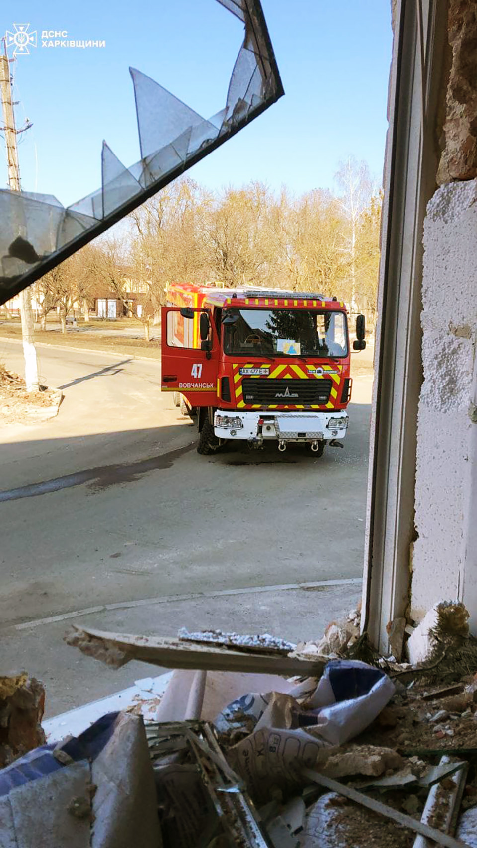 «Надзвичайники м. Вовчанськ поверталися з ліквідації пожежі, спричиненої ворожим обстрілом, коли ворог скинув боєприпас із повітря на їхній спецавтомобіль», – йдеться у повідомленні.