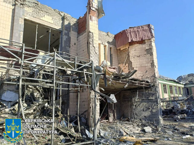 Начальник Слідчого управління Нацполіції Харківщини Сергій Болвінов написав у Facebook, що за попередньою інформацією росіяни скинули керовану авіабомбу. Постраждалі – пенсіонерка та завгосп районної лікарні.