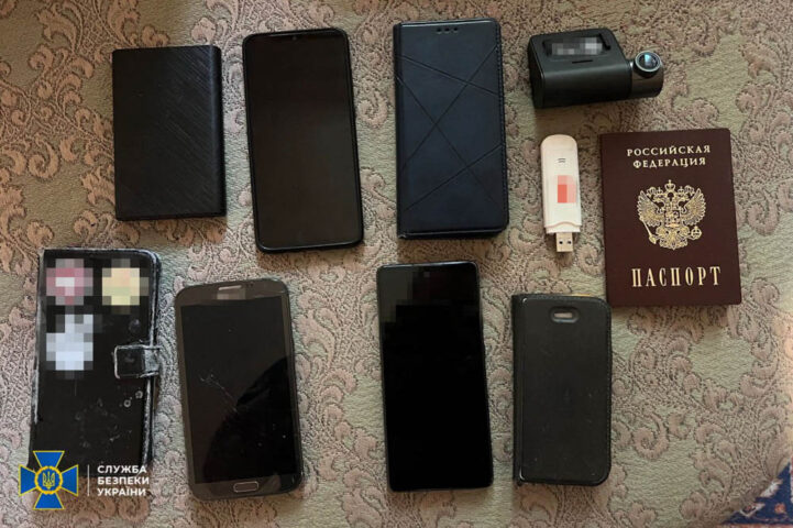 Під час обшуку в помешканні затриманого вилучено російський паспорт, автомобільний відеореєстратор з відзнятими кадрами військових об’єктів та мобільні телефони із доказами спілкування з агресором.