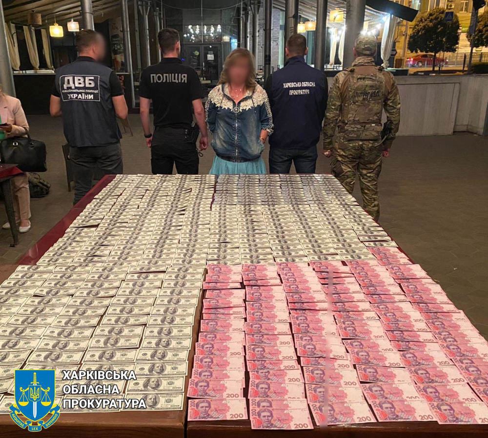 Спільними діями оперативники внутрішньої безпеки поліції та військової контррозвідки СБУ затримали жінку одразу після отримання нею обумовленої суми грошей в одному з кафе Харкова.
