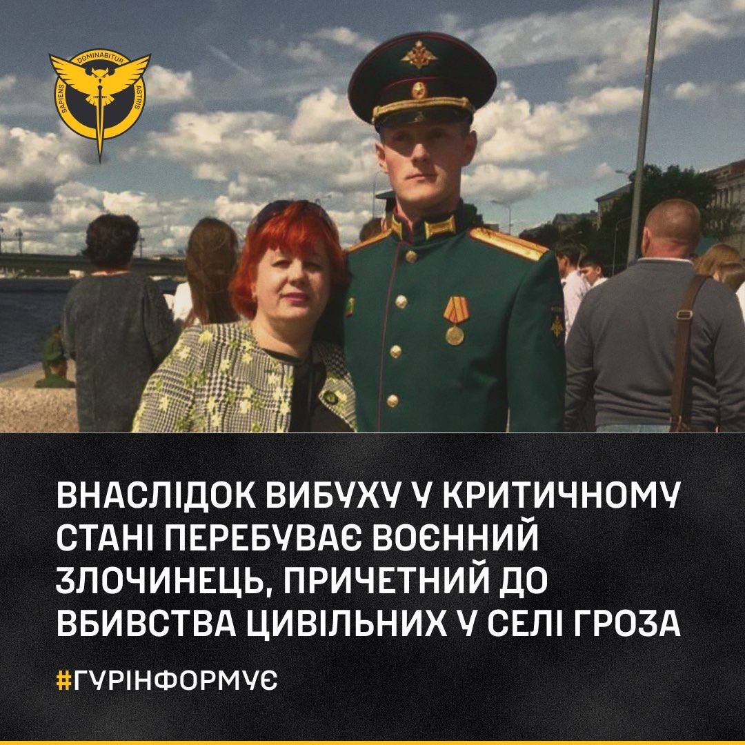 Внаслідок вибуху у критичному стані перебуває воєнний злочинець, командир батареї дивізіону 112 ракетної бригади 1 танкової армії західного воєнного округу зс рф (в/ч 03333)  капітан наґайко константін владіміровіч. Саме його батарея вдарила ракетою по кафе у селі Гроза під час поминок.