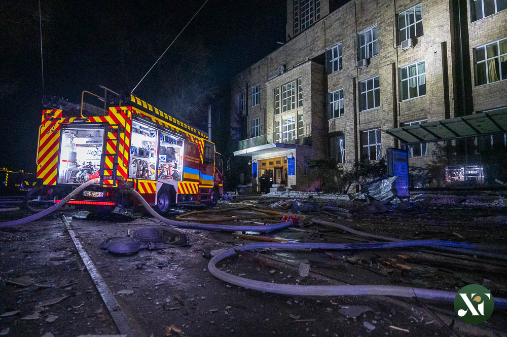 Як сказав журналістам на місці влучання у медзаклад мер міста Ігор Терехов, «були прильоти на теперішній час дев’яти «шахедів», – передав кореспондент Харків Times.
