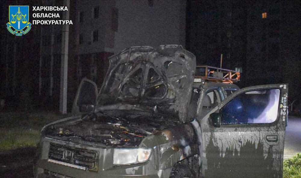 Поліція затримала 34-річного жителя Харкова, якого підозрюють у підпалі автомобіля Honda Ridgeline, що перебував на балансі військової частини та використовувався українським військовослужбовцем.